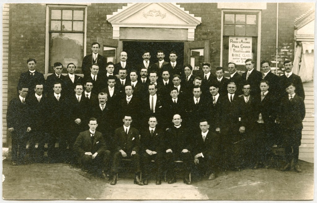 1917 The Women’s Missionary Society at Rhodes Avenue Presbyterian Church was very active in supporting both home and foreign missions. The President was Mrs. Crone. The Minister was H. A. Berlis. The membership was about 700, of which 300 or more where overseas. The Church was actively promoting gardening to increase food production. W. Allen did “an illustrated lecture” on the subject.