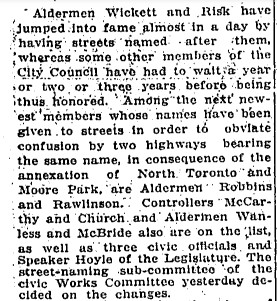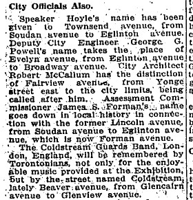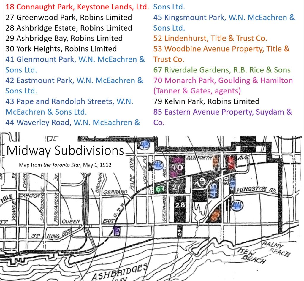 When the Ashbridges sold their farm west of the Toronto Golf Club grounds. F.B. Robins was their realtor. When Erie Realty Company sold lots on and just west of Coxwell Avenue, Frederick B. Robins was their realtor too. Henry Pellatt, F.B. Robins and their circle were known their free and easy approach to such things as insider trading, conflict of interest, and manipulating the markets.