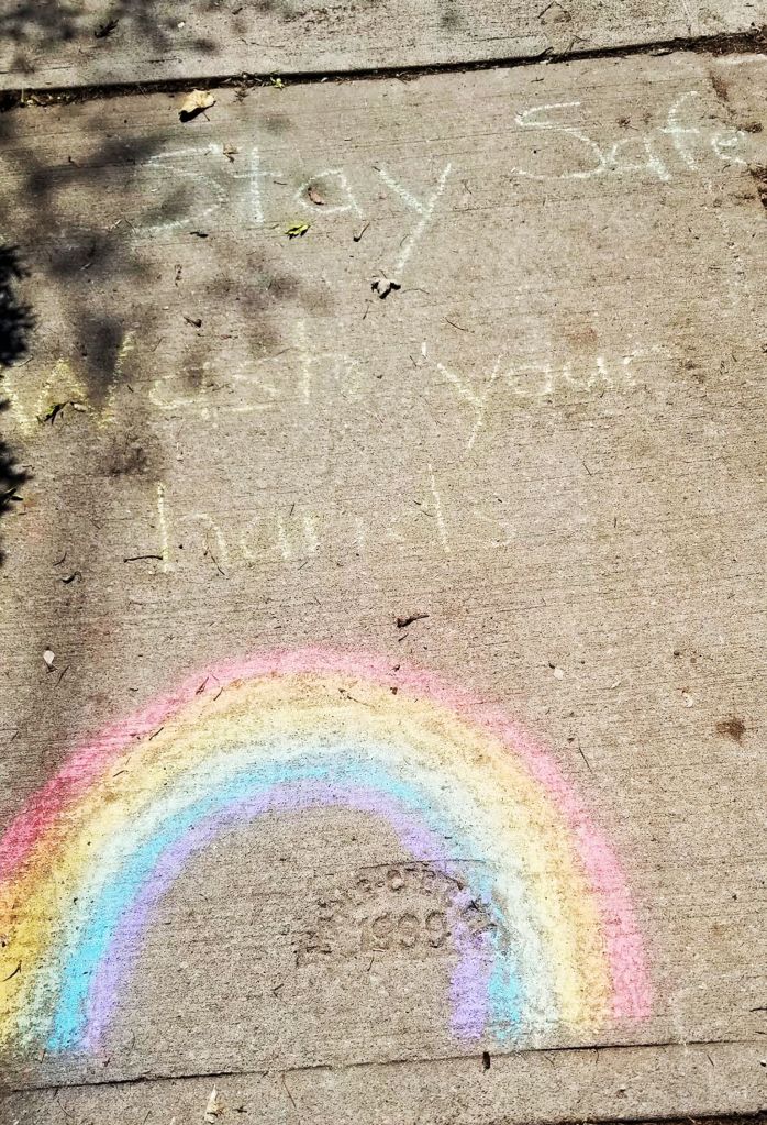 And even on the darkest days, there are rainbows in the sky and on the sidewalk. I took this photo on Woodfield Road.