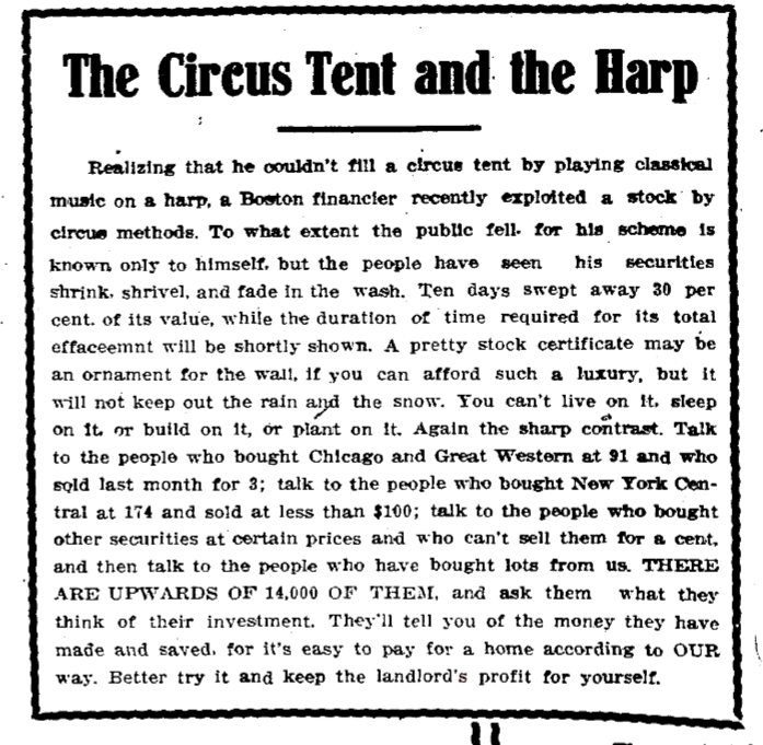 Take A Stock Investment, Toronto Star, April 9, 1908
