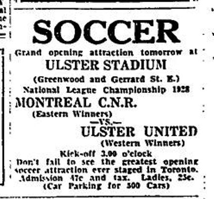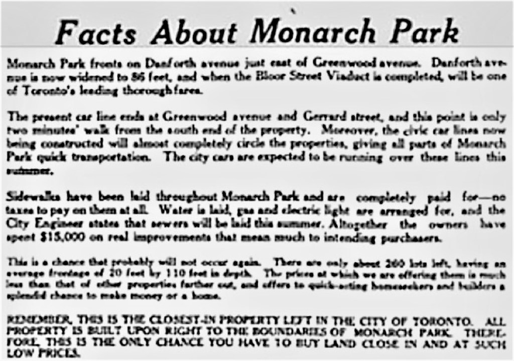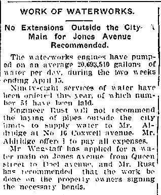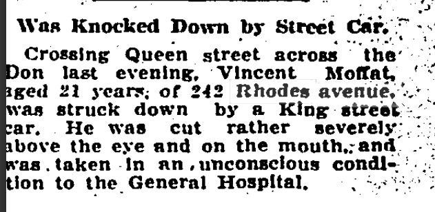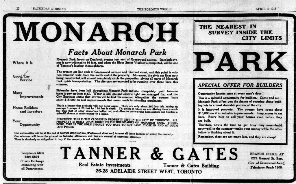 Montreal CNR soccer at Ulster Stadium Globe, April 19, 1929Paving streets East Toronto Toronto Star, April 19, 1920Fred Dawes, George Bird, T. A., Chalmers, Small’s Pond, first canoes of the season, Toronto Star, April 19 1920Vincent Moffatt, 242 Rhodes Ave, struck by streetcar, Globe, April 19, 1910Water supplied outside city limits, Aldridge and Wagstaff, Toronto Star, April 19, 1900Examples of McEachern houses, McEachern Houses, Governor’s Bridge, April 19, 1926Examples of McEachern houses, McEachern Houses, Governor’s Bridge, April 19, 1926Examples of McEachern houses, McEachern Houses, Governor’s Bridge, April 19, 1926Monarch Park, Toronto World, April 19, 1913Monarch Park, Toronto World, April 19, 1913
