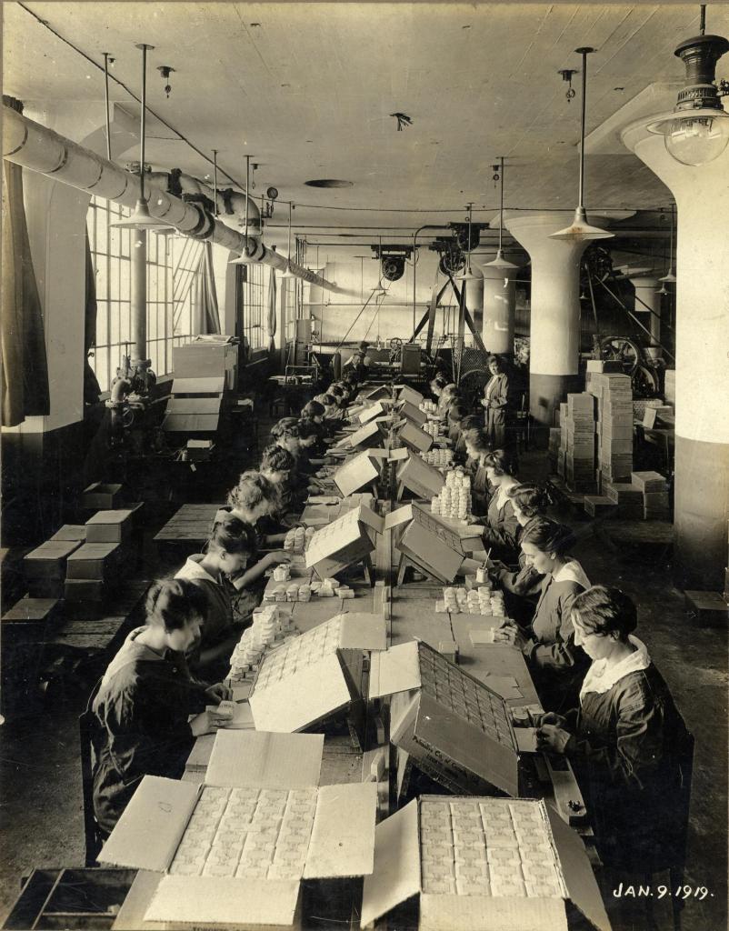 The finished factory, 1919Women packing soap at the Carlaw Avenue Palmolive factory