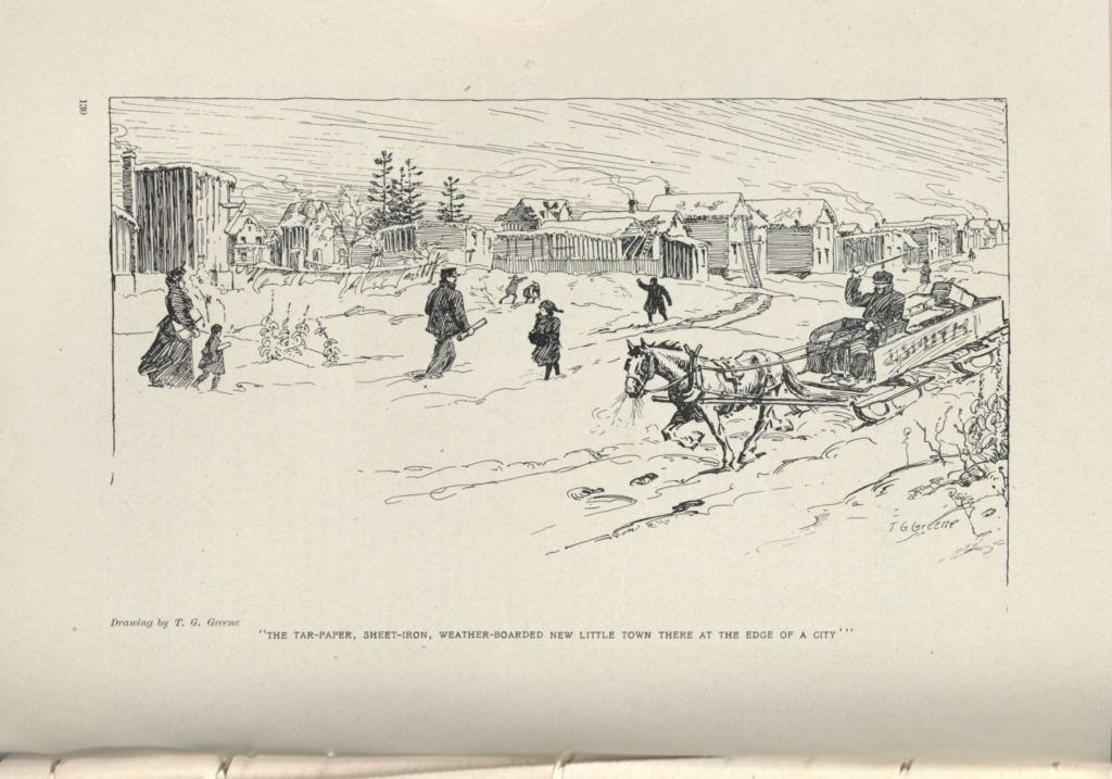 The sound of little children crying was yet in the wind that whimpers and blow over the land of tar-paper homes when The Globe reporter visited it last night. (Globe, Feb. 1, 1908)
