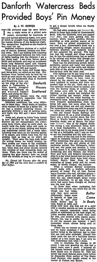 Robert Gay, the minister of St. Monica’s Church (where the Toronto Public Library’s Gerrard-Ashdale Branch is today) described his experience: