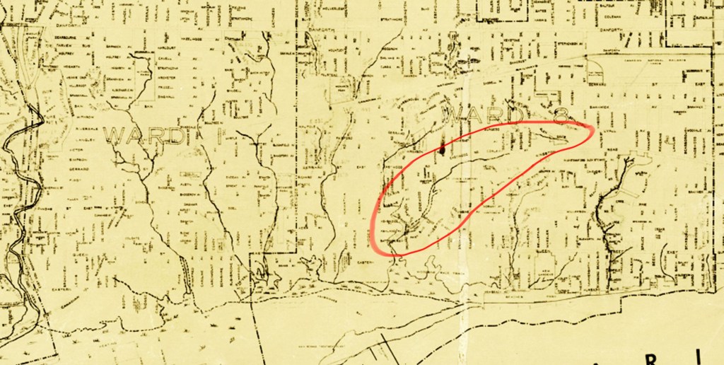 Tomlin’s Creek and the other lost streams of the east end, from a 1951 City of Toronto Engineer’s map