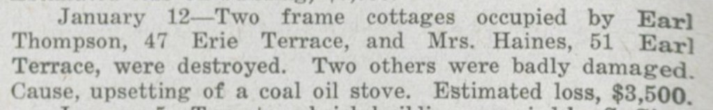 At the time Erie Terrace (later renamed Craven Road) was too narrow for the City’s fire trucks to drive on. So this narrow street, known as “Bootlegger’s Alley”, with shacks packed in side by side was particularly vulnerable to conflagrations that could quickly spread from house to house.