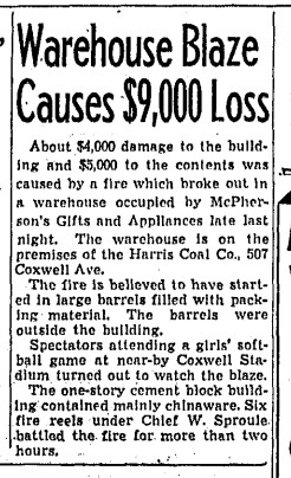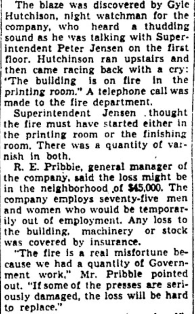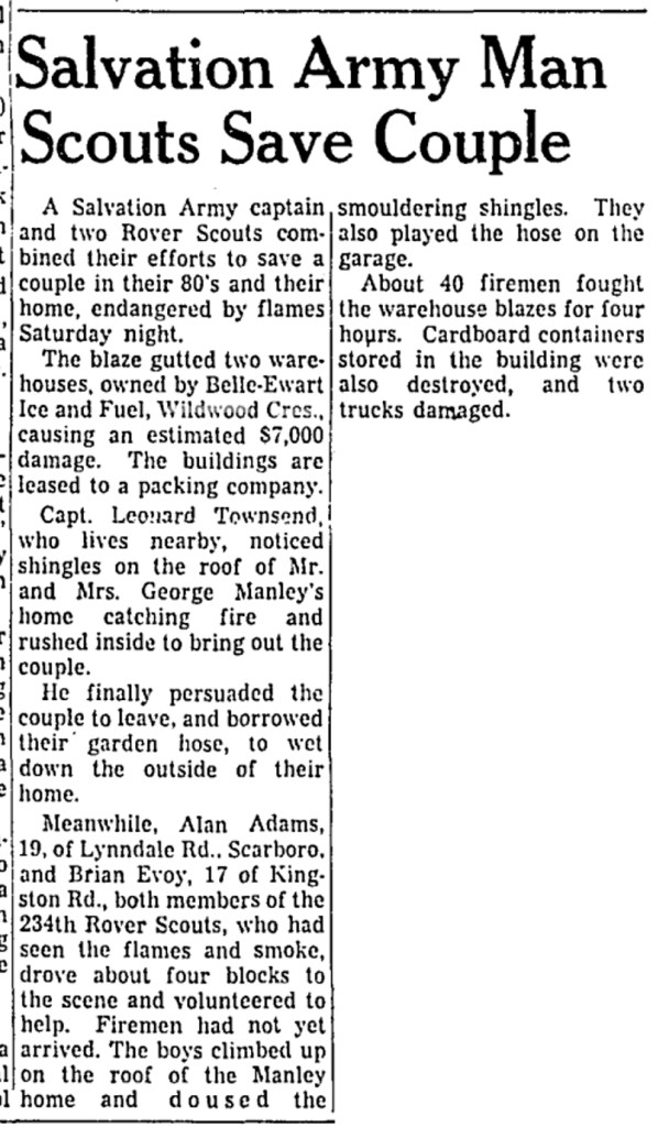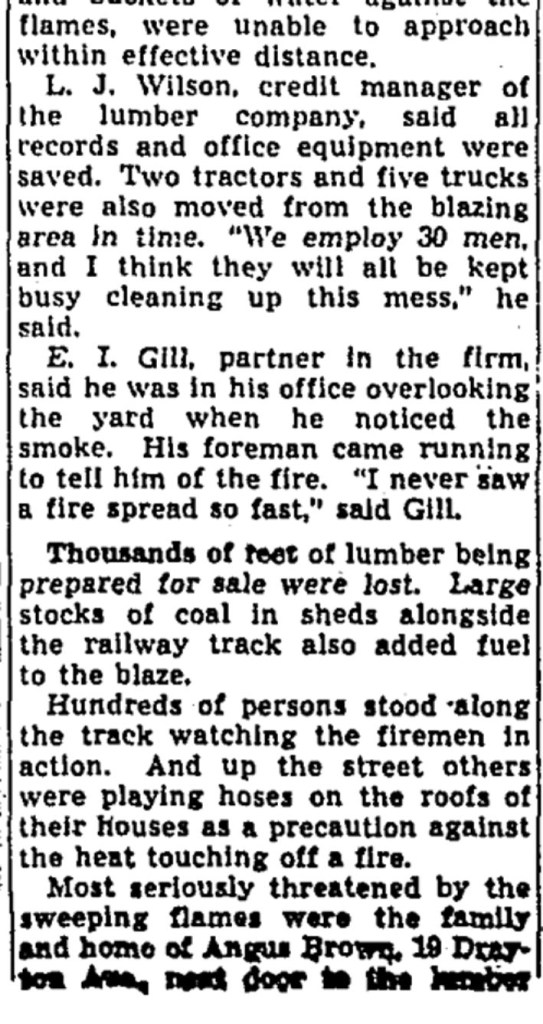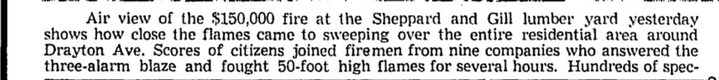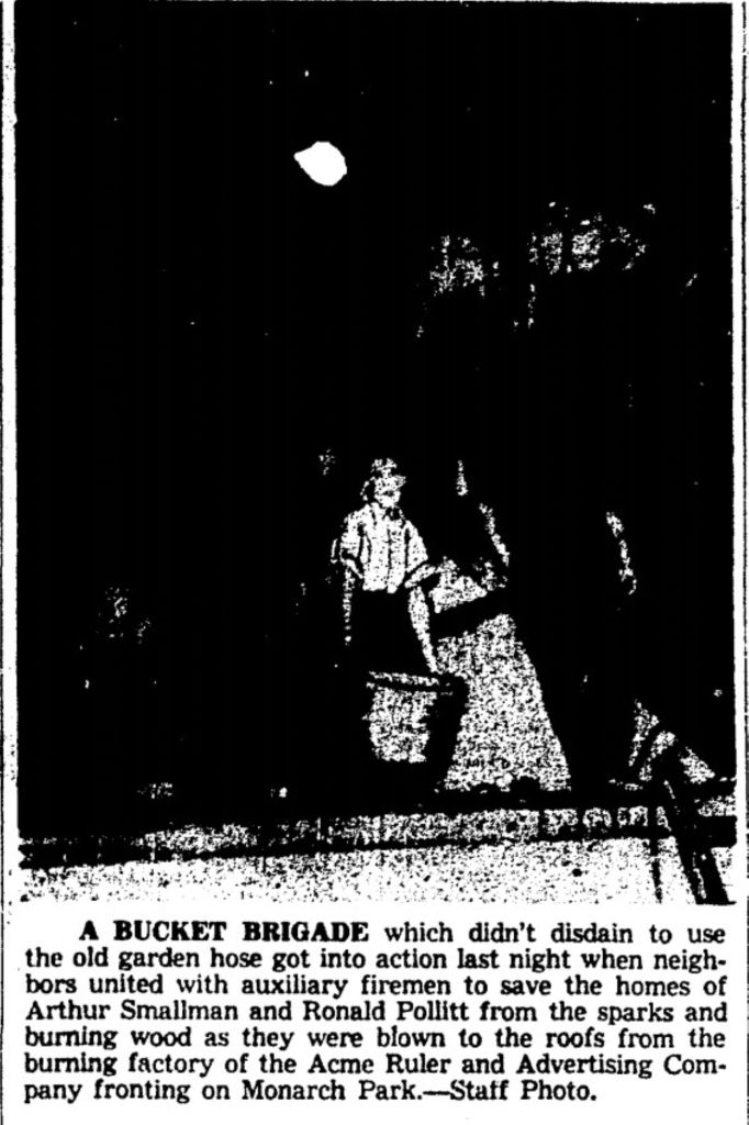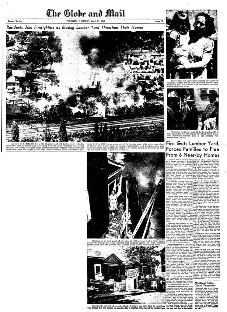Below: Fire at the Acme Ruler Company, Globe and Mail, June 11, 1942