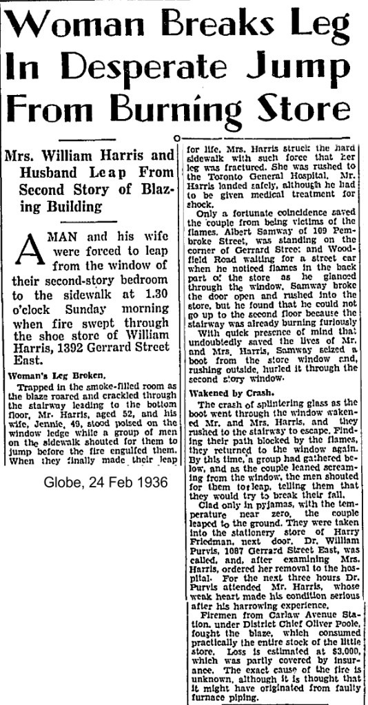 Fire, William Harris shoe store, 1394 Gerrard Street East, Globe, 24 Feb 1936Fire, William Harris shoe store, 1394 Gerrard Street East, Globe, 24 Feb 1936
